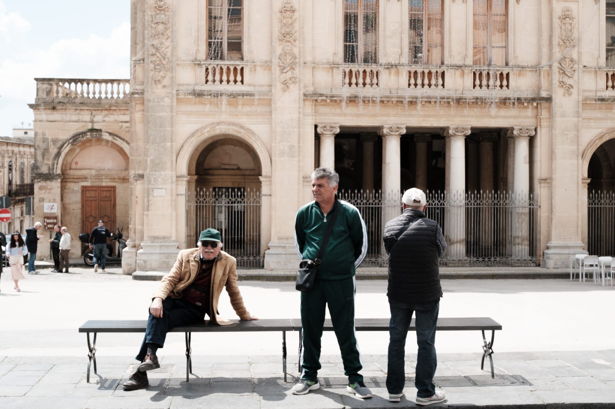 And there’s a collective benefit too. When people rest in public space, there are more eyes on the street. More presence. The city becomes a place to stay, not just to pass through. Those three guys on the bench in Noto were making the street safer and more alive just by being there.